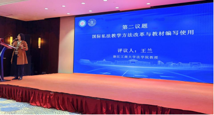 我院教师王兰、胡敏飞应邀参加了此次会议。会上,王兰教授在“国际私法教学方法改革与教材编写使用”议题第一单元作为评议人,就涉外法治人才培养视野下国际私法教学内容更新、教学方法改革等问题做了简短发言。