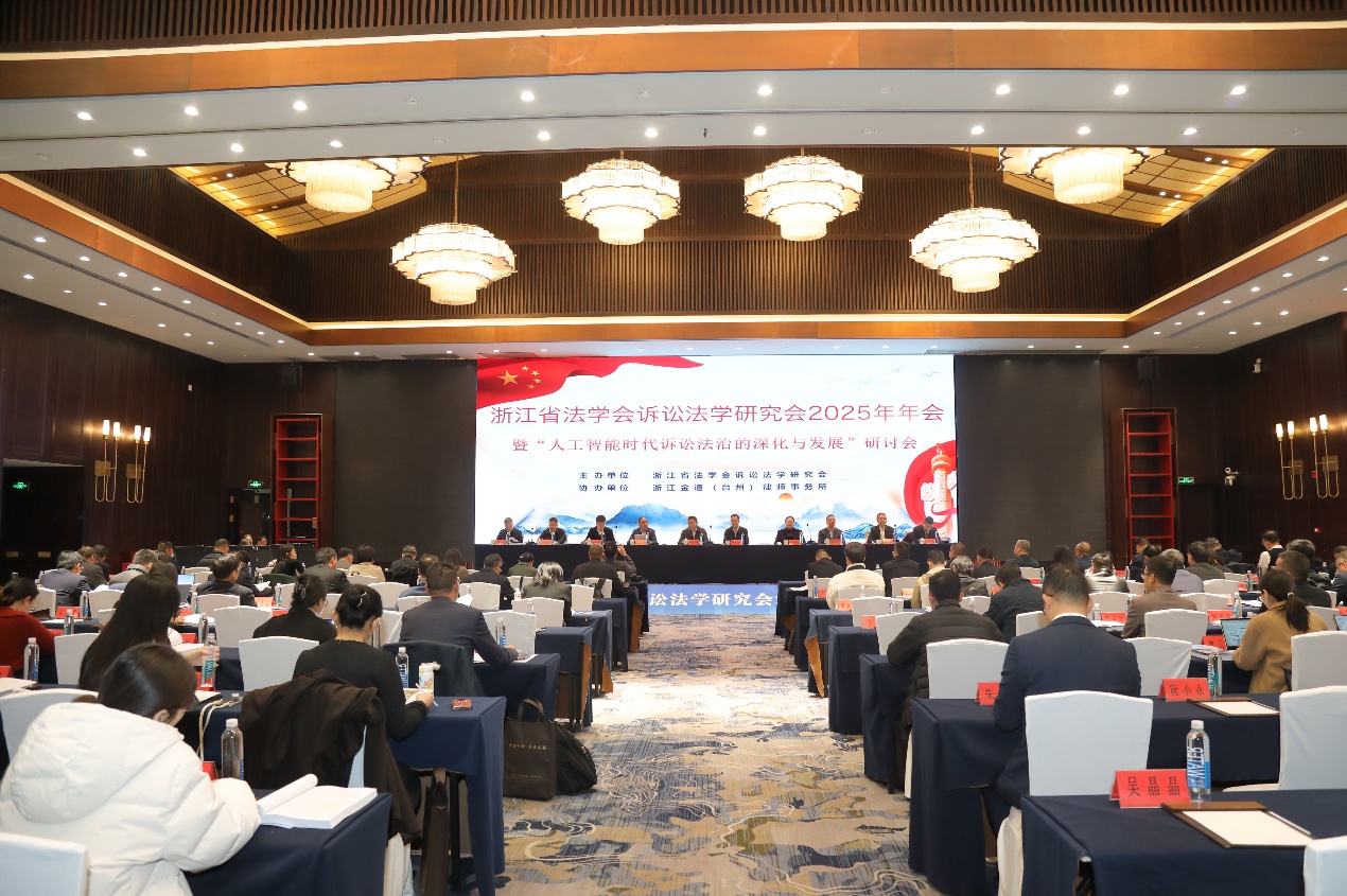 2025年11月22日,浙江省法学会诉讼法学研究会2025年学术年会在浙江台州召开,本次年会由浙江省法学会诉讼法学研究会主办,浙江金道(台州)律师事务所协办,会议主题为“人工智能时代诉讼法治的深化与发展”。浙江省法学会副会长、浙江省人大监察和司法委员会副主任委员黄生林,中共台州市委副书记、政法委书记苗伟伦,浙江省法学会诉讼法学研究会会长吴高庆,浙江省高级人民法院原副院长徐建新,浙江省人民检察院副检察长程曙明,台州市人民检察院检察长周晓杨,舟山市人民检察院检察长糜方强、丽水市人民检察院代检察长李忠强等领导和嘉宾共180余人出席会议。