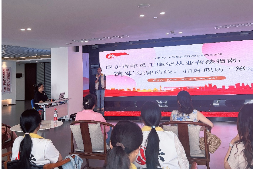 在浙江省人才发展集团的清廉宣讲会上,实践队员祝佳音、葛怡岑,研究生普法宣讲团成员陈宇琳以 “青春筑廉正,才企共清风” 为主题,为青年员工带来了一场深刻的分享。宣讲围绕集团获评 “2024 年浙江省清廉建设成绩突出单位” 的荣誉展开,解析了这份成就背后 “制度铁网”与 “文化浸润” 的双重支撑,并且从法学生视角出发,宣讲勾勒出企业清廉的理想图景:既要像法律体系般形成 “风险预判 — 流程管控 — 监督问责 — 持续优化” 的 “合规闭环”,也要让法治精神与清廉文化融入日常,更需青年以 “如炬” 之力坚守一线。最终,宣讲呼吁通过校企共建 “清廉人才培养基地” 等方式,提前为青年筑牢廉洁防线,让青春力量成为 “才企共清风” 的强劲动能。
