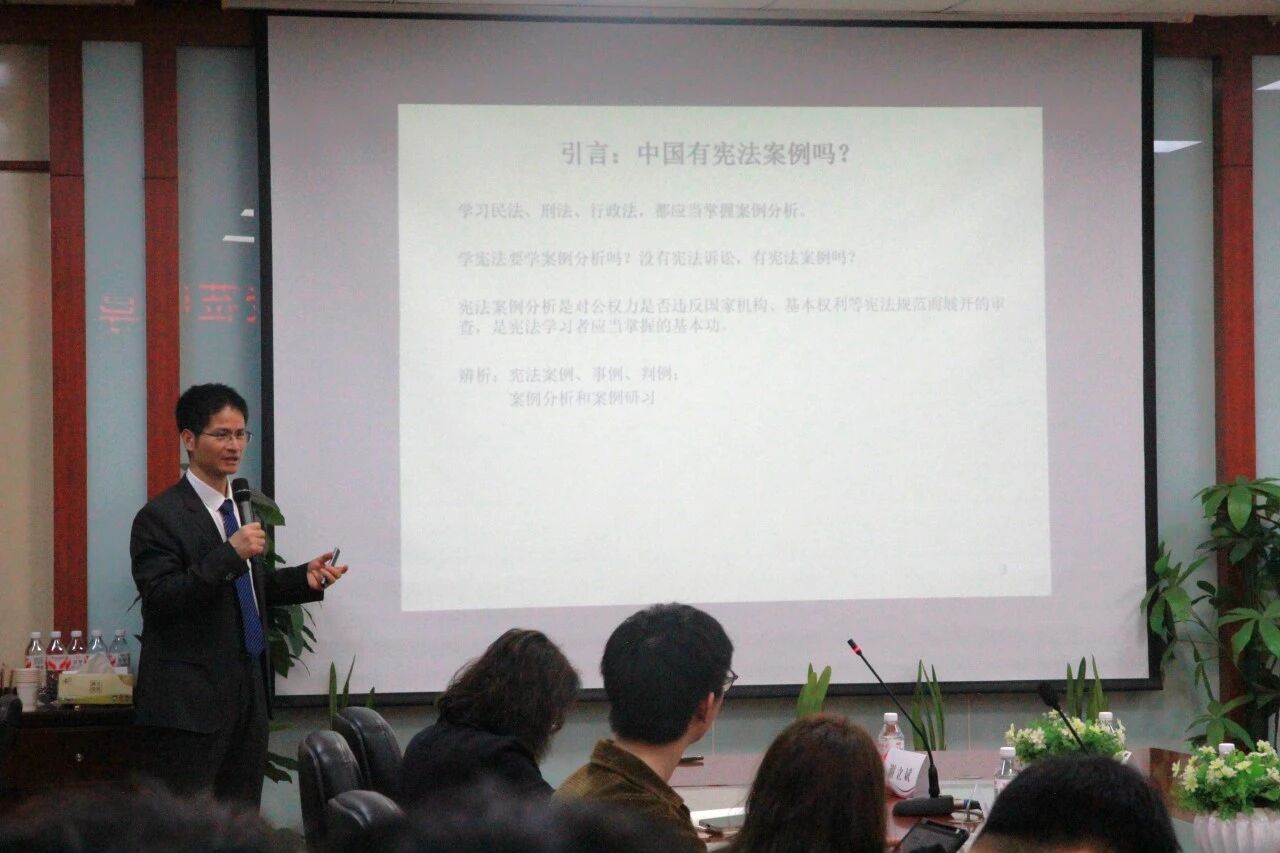 讲座中,谢立斌教授对宪法案例分析的原理与方法进行了系统讲解。谢立斌教授首先界定了“宪法案例”与“宪法事例”“宪法判例”的区别,强调宪法案例分析是对公权力是否违反国家机构、基本权利等宪法规范的审查,是每位宪法学习者应当掌握的基本功。随后,谢立斌教授详细阐述了“鉴定式案例分析”与“判决式案例分析”的异同,指出我国判决书采取从因到果的顺序,与鉴定式思维天然一致。在此基础上,谢立斌教授通过“调取手机通信记录”“地铁站查身份证”“医院拒绝单身女性冻卵”等贴近生活的真实案例,层层拆解国家机构、平等权、自由权三大案例分析方法。最后,谢立斌教授总结了宪法案例分析的四重意义:一是培养合宪性判断的实操能力,且这种能力可平移至法学其他领域;二是让宪法和宪法学走入日常,打破“宪法是政治课”的刻板印象;三是有助于理解宪法学术问题;四是树立公共利益与个人权利应当平衡的理念。