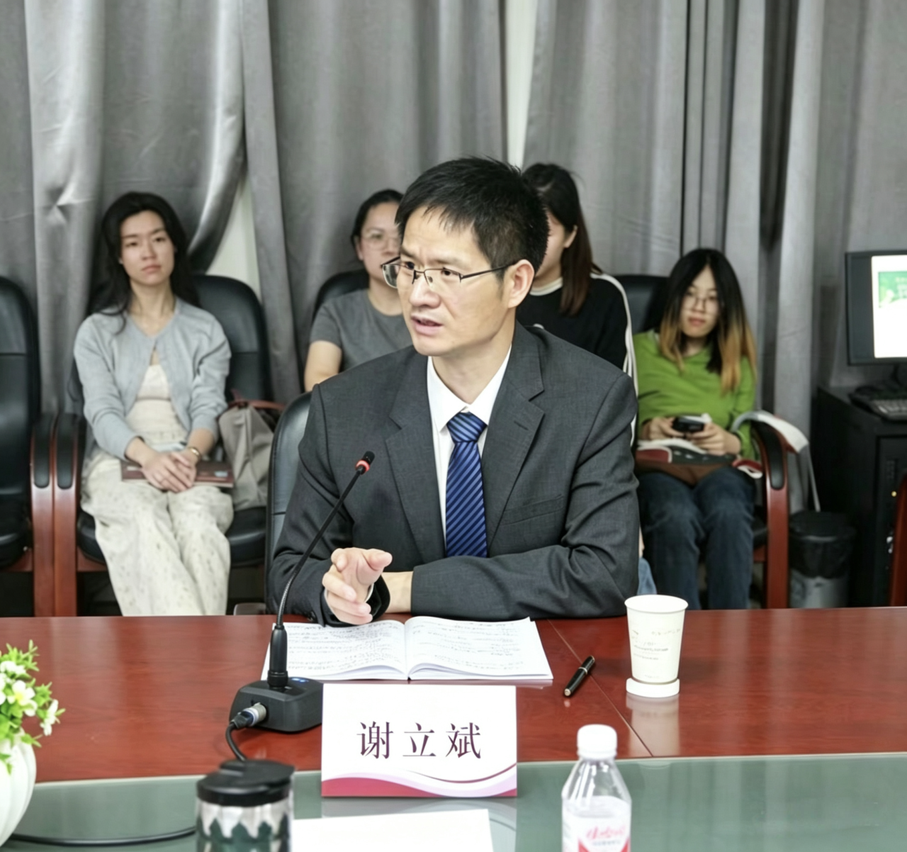 2026年4月9日晚,中国政法大学比较法学院副院长、中德法学院院长谢立斌教授应邀来我院作“宪法案例分析原理”讲座。本次讲座由宪法与行政法学科带头人王秀哲教授主持,我院副院长高一飞副教授、学术副院长方涧副教授、韩宁副教授、黄文瀚博士等出席,近70名本科生、研究生到场参加。