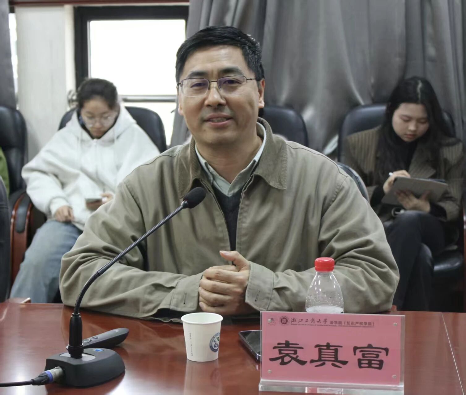 2026年4月15日下午,上海大学知识产权学院院长袁真富应邀来我院作“知识产权价值的可视化与能见度管理”讲座。本次讲座由我院特聘副教授、硕士生导师张浩泽主持,我院副教授、硕士生导师牛强、浙江理工大学产业技术中心副主任张义玲、上海邦信阳(杭州)律师事务所管理委员会执行主任吴迪作为与谈人参加,我院近30名本科生、研究生到场参加。